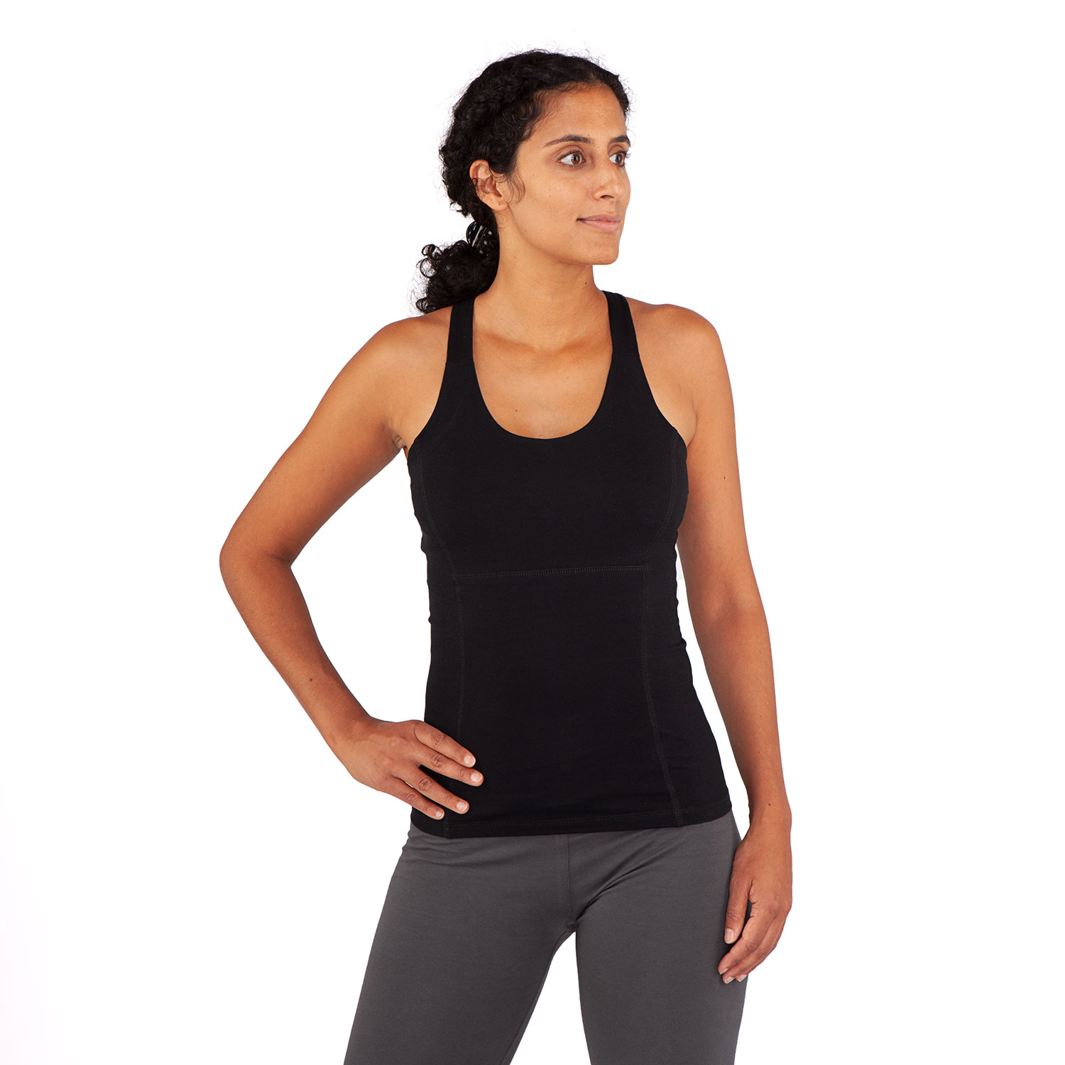 Lisamugavust annab sisseehitatud toestus, mis aitab end kindlalt tunda ka pöördasendites ja intensiivsema treeningu ajal. Pehme orgaaniline puuvill on naha vastas mugav ning elastaan lisab venivust. Topp sobib hästi joogaks, pilateseks ja muuks treeninguks.